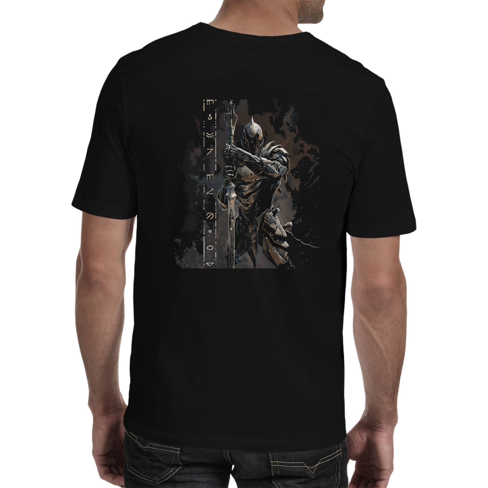 Fine combed 100% cotton, crewneck T-shirt, Design shows a warrior's helmet on the front and a Stoic warrior on the back.